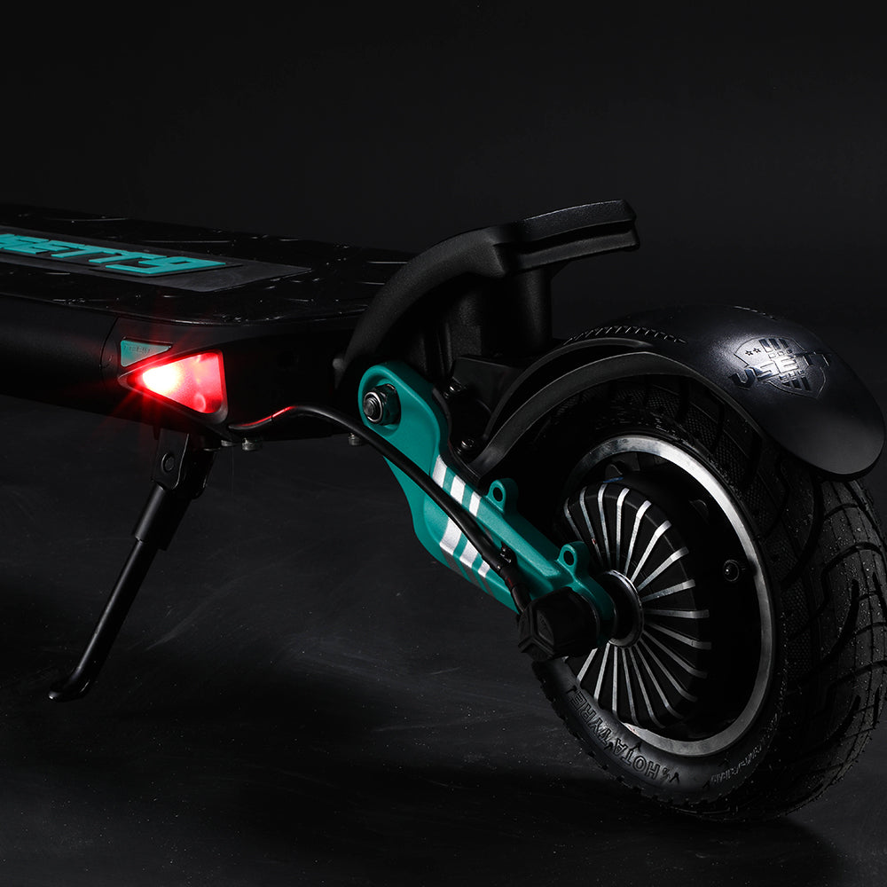 Experience the freedom and advanced performance VSETT 9+ delivers with dual motors. The dual 650 W motors accelerate up to 53 km/hr while the dual disk brakes bring you to a positive stop. Front and rear pneumatic tires, coupled with dual adjustable suspension, provides a smooth ride.