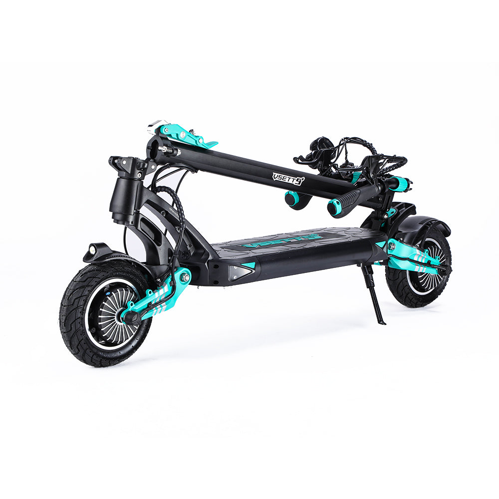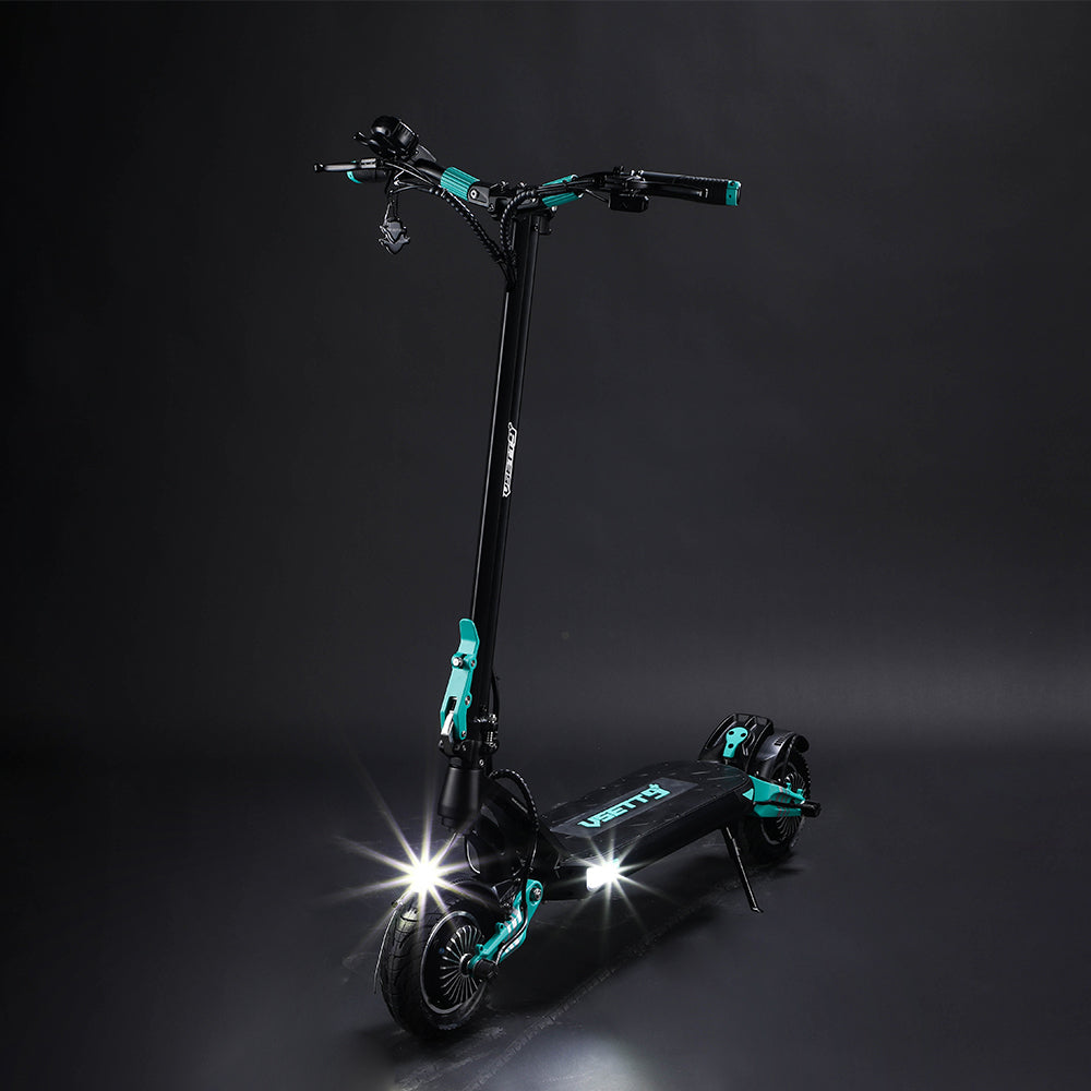 The VSETT 9+ touts aggressive styling and features a bright fender integrated headlight. Be seen with taillights, flashing brake lights and integrated turn signal lights. Feel secure with the robust patented triple locking mechanism for the folding hex stem riser.