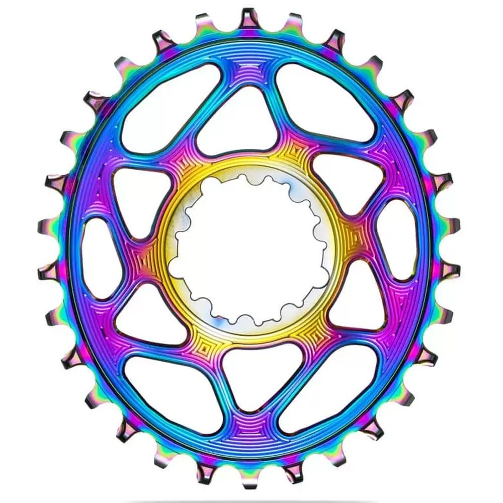 The Original one and only Premium absoluteBLACK Sram compatible Direct mount BOOST 1X Oval narrow wide chainrings in PVD Rainbow (oil slick) colour. Designed for GXP, DUB and Long BB30 cranks. This special PVD Rainbow Titanium coating process makes the chainrings very durable and incredibly beautiful. It is the most Premium oval chainring on the market with scientifically proven performance gains.