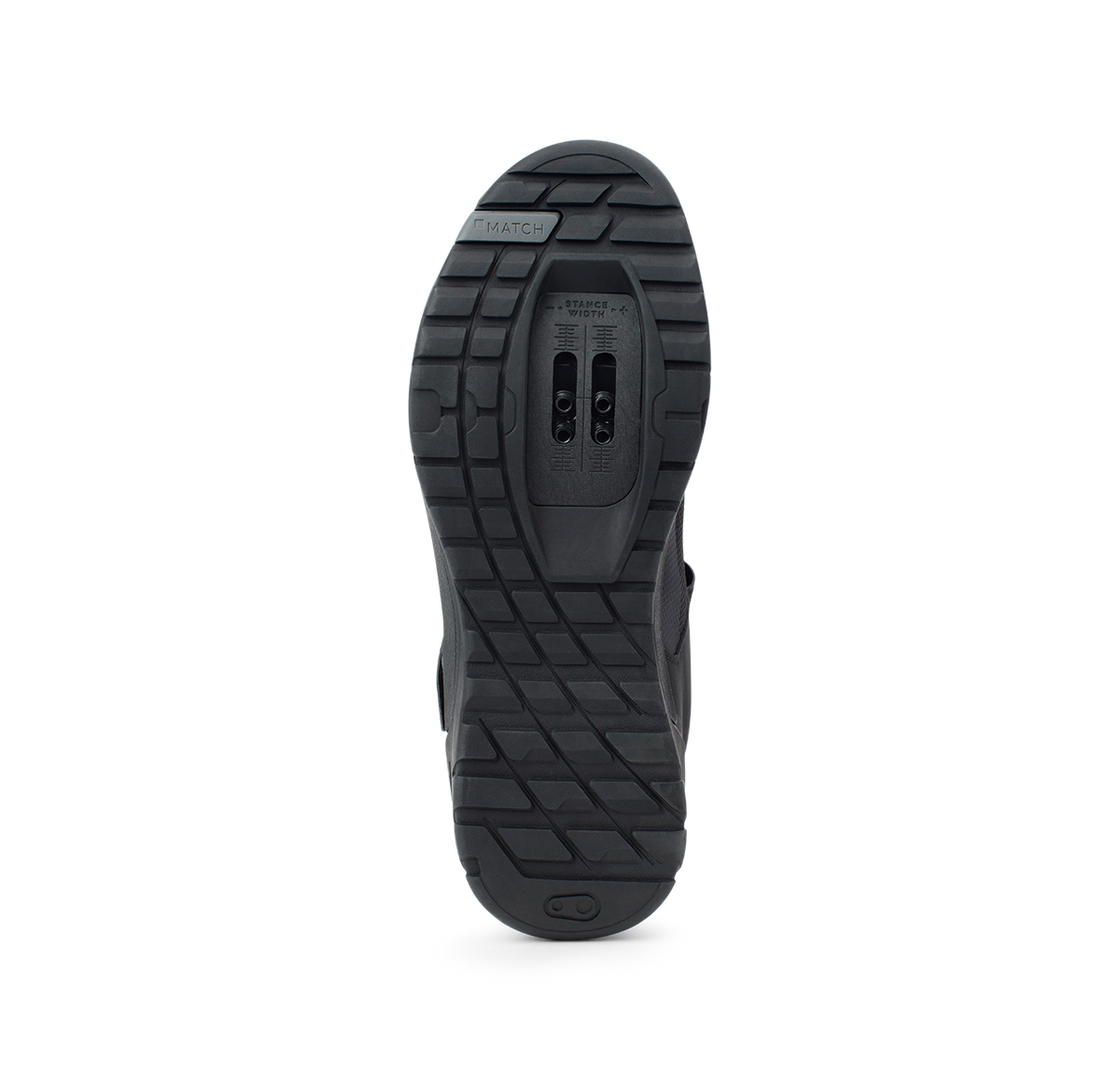 The ramped Match cleat box offers easy front and rear pedal entry and mud shedding. An extra stiff carbon-injected nylon shank transfers power efficiently when climbing or sprinting.