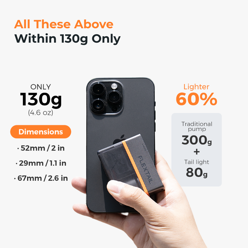 There is no need to worry about the tail light function consuming too much battery power. Even if you use the tail light function for 4-6 hours, it only consumes half the battery of the Tiny Tire Pump 200, which is still enough to help you deal with emergencies.