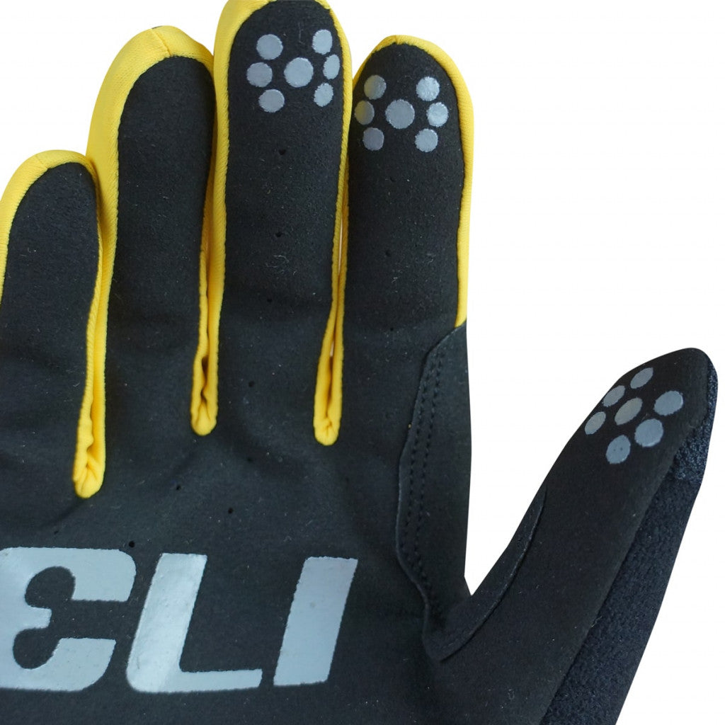 Durable, ventilated faux suede palms and thumb reinforcing to keep you comfortable on rough trails. Designed for all elements. Silicone grip details for handlebar and brake grip. Elasticated cuffs for a secure fit. Pull-tab to make it easy to put on and take off, perfect for everyday use.