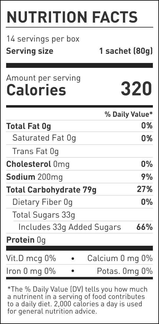 Widely used by the best runners, cyclist and triathletes in the world. 80g of carbs per serving (500 ml). Can be used before, during and/or after activity.
