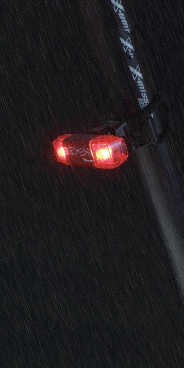 2 pcs high brightness red LED. CNC Aluminium heat sink casing. Auto safe mode. Mode memory function. Rechargeable lithium polymer battery (3.7V 300 mAh). 7 modes: Mode1 / Mode2 / Mode3 / FL 1 / FL 2 / ALT FL / DAY FLASH (DOUBLE BLAST). Quick release universal bracket RB-22 (fits all round bars and AERO style bars). Low battery, charging and fully charged indicator. Automatic fully charged cut-off system. Side visibility. Water resistant (IPX 4).