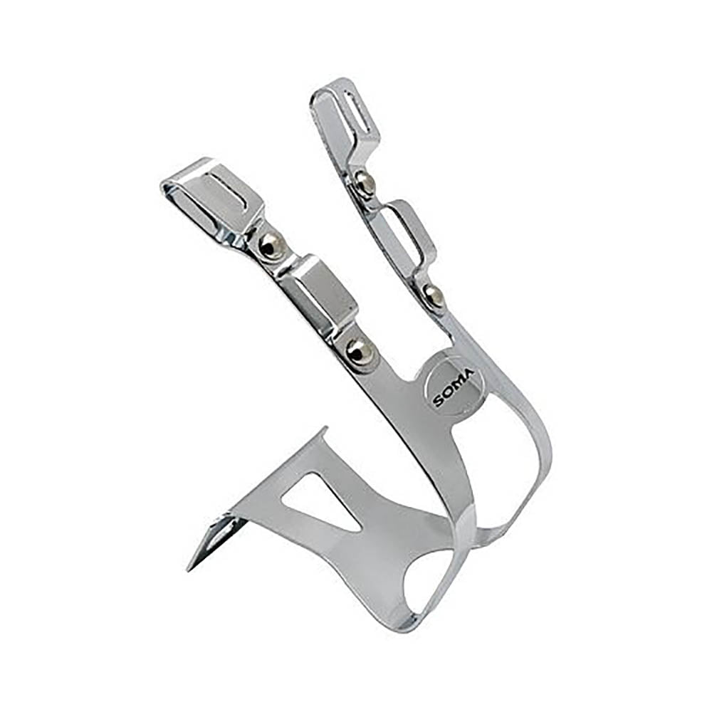 Steel toe clips designed for our double leather toe straps. Steel, mirror chrome plating. Strong steel gate rivets. Slotted bolt holes make it compatible with most platform pedals.