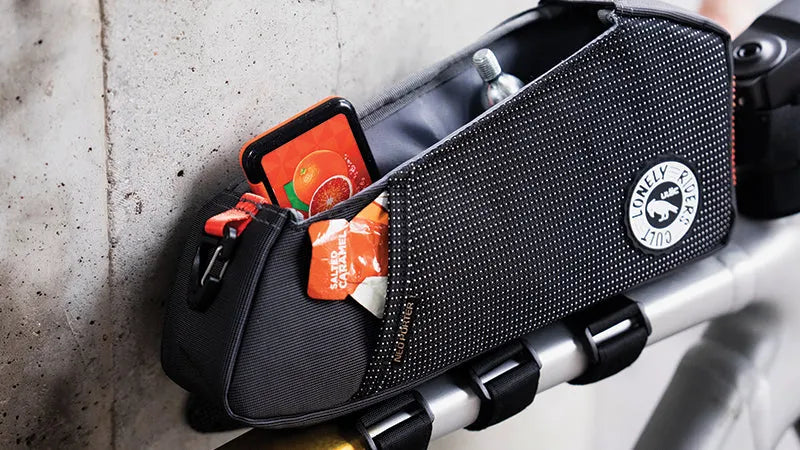 The Trekking Verve Max is a unique top tube bag utilizing a magnetic flap rather than a conventional zipper. The magnetic flap enables faster opening / closing, as well as a bigger pocket for better access.